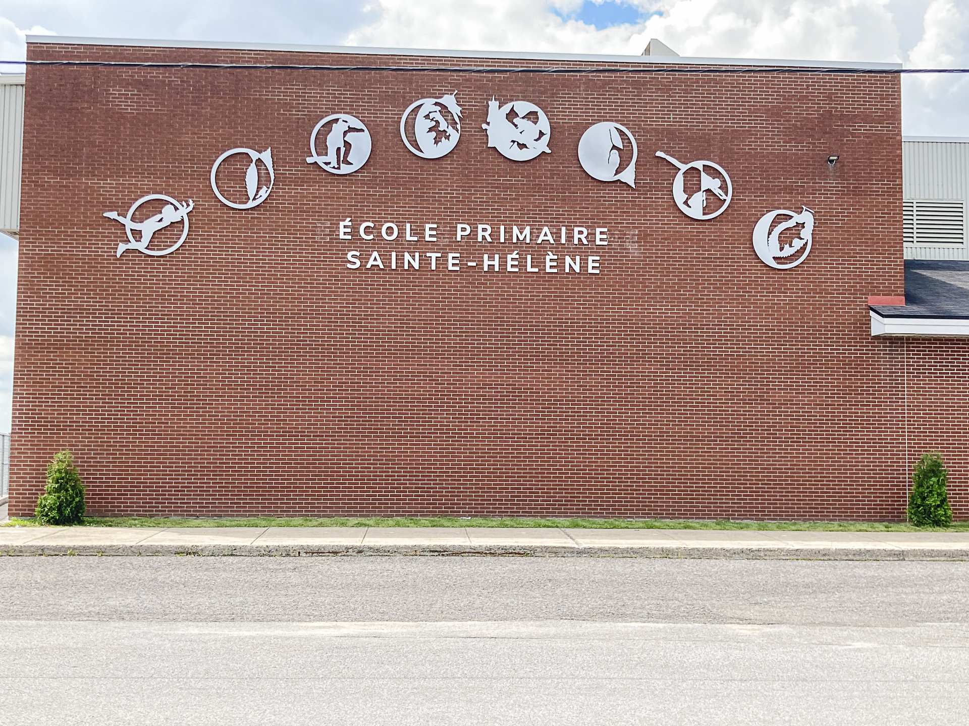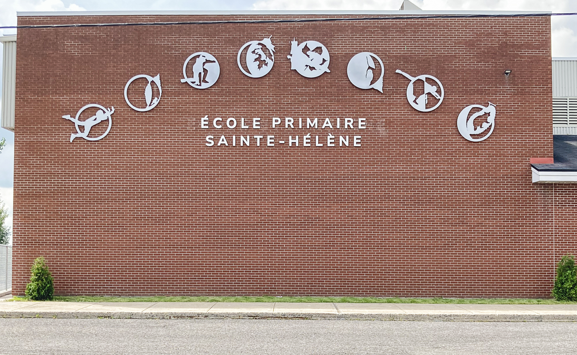 L’œuvre est constituée de huit formes circulaires situées de façon séquentielle au-dessus du nom de l’école, sur le mur de façade du gymnase. Ces formes représentent les huit phases croissantes et décroissantes d’un cycle lunaire et symbolisent les huit années que passent les élèves à l’école Sainte-Hélène, de la prématernelle à la 6e année. Le positionnement des pièces en arc de cercle traduit la trajectoire de l’astre pendant son cycle, la lune atteignant son zénith lorsqu’elle est pleine.