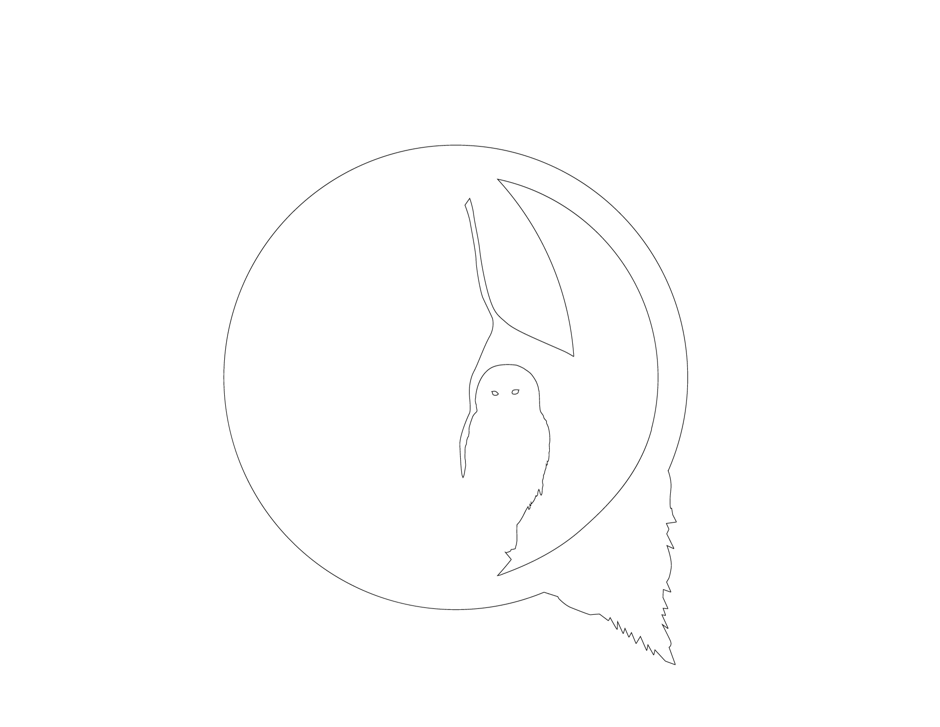 Imbriqués dans chacune de ces phases lunaires, on découvre différentes silhouettes de personnages, d’animaux et de feuilles d’arbres qui se superposent les unes aux autres. Les croisements entre les différentes représentations nous invitent à disperser notre regard entre l’espace négatif et l’espace positif des formes dessinées. Ces éléments débordent des cercles lunaires, les rendant asymétriques et dynamiques.