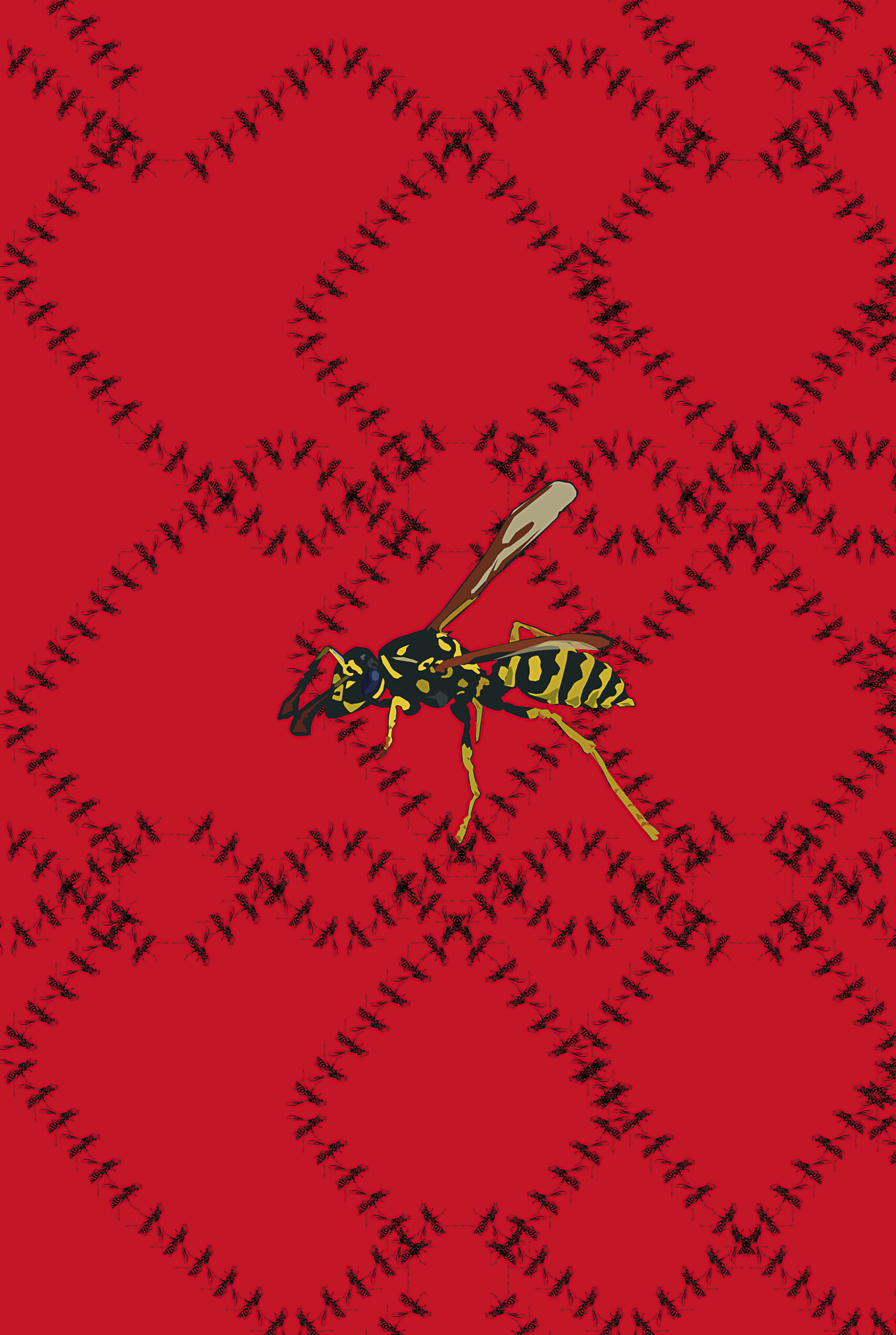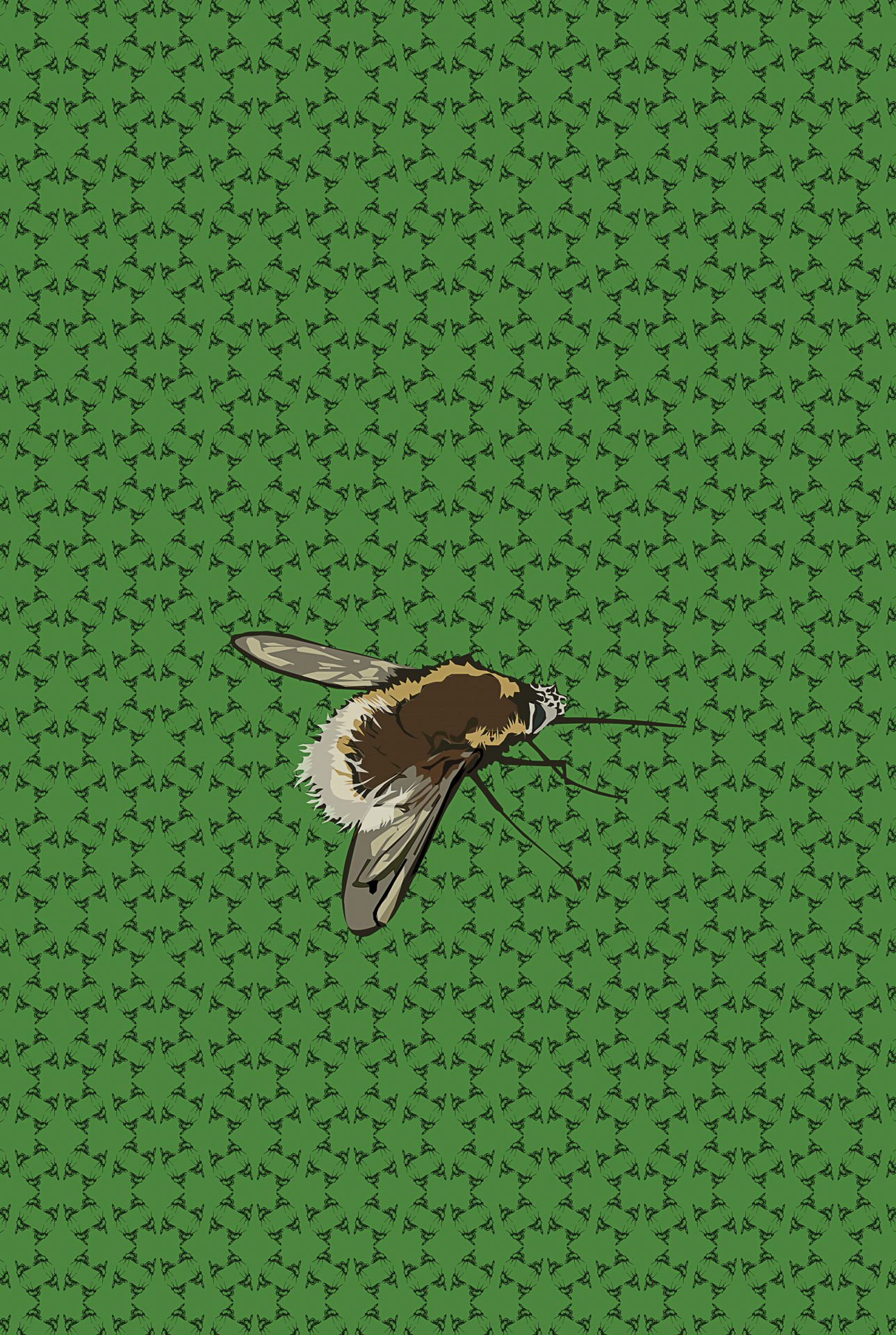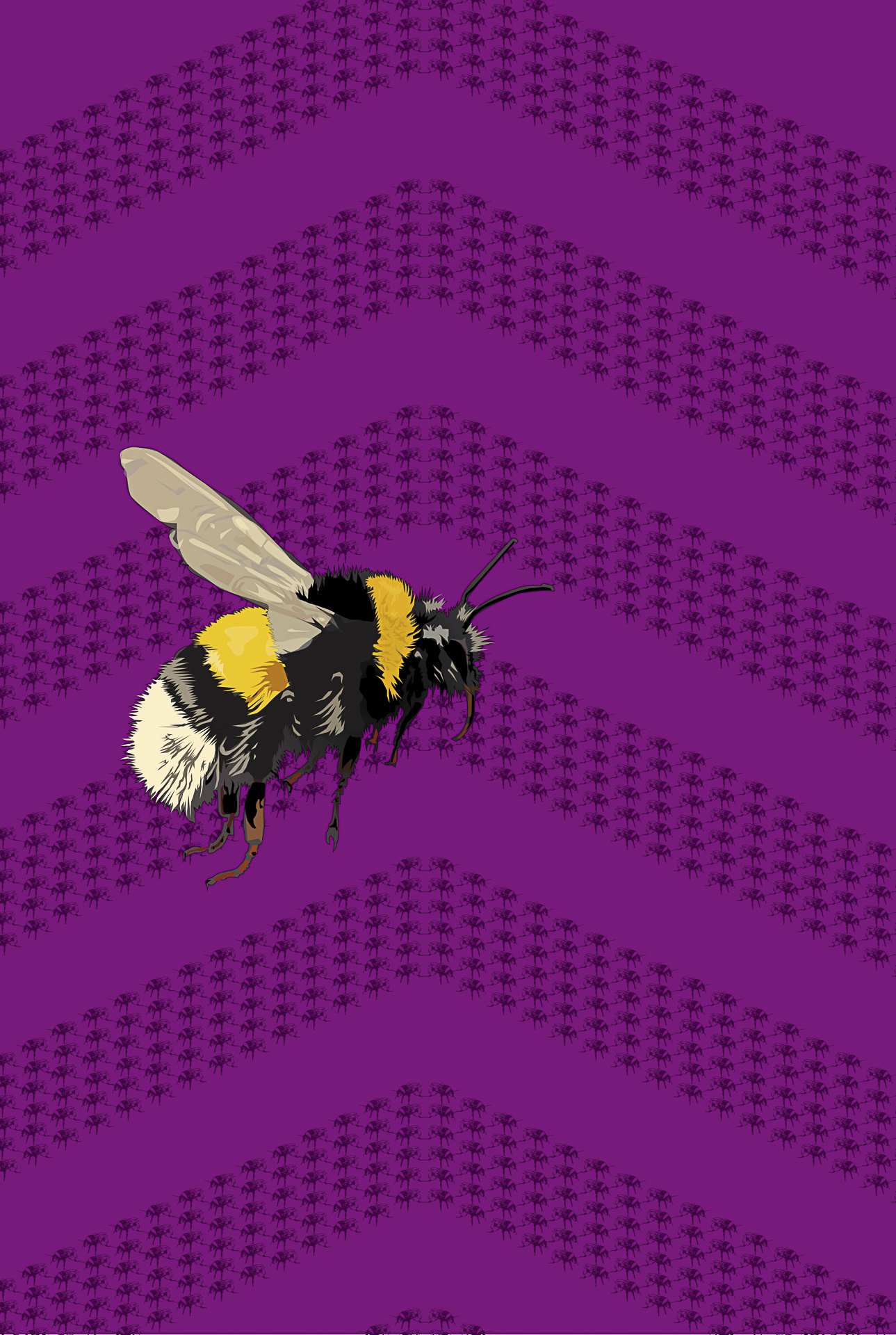 Les trames de fond expriment le mouvement; la danse du papillon qui voltige et virevolte, l’abeille qui butine et récolte, le bourdonnement de la guêpe qui résonne, de la mouche qui tournoie et s’envole. Il renvoie également au vent dans le champ de fleurs sauvages, la nuée d’un essaimage en plein ciel ou la fréquence sonore du bourdon bombus en action.