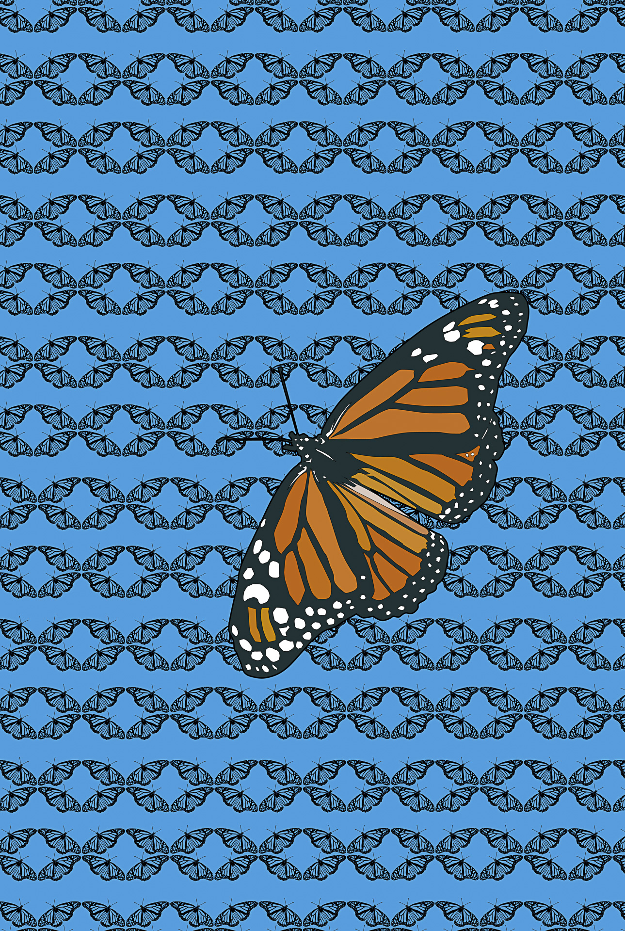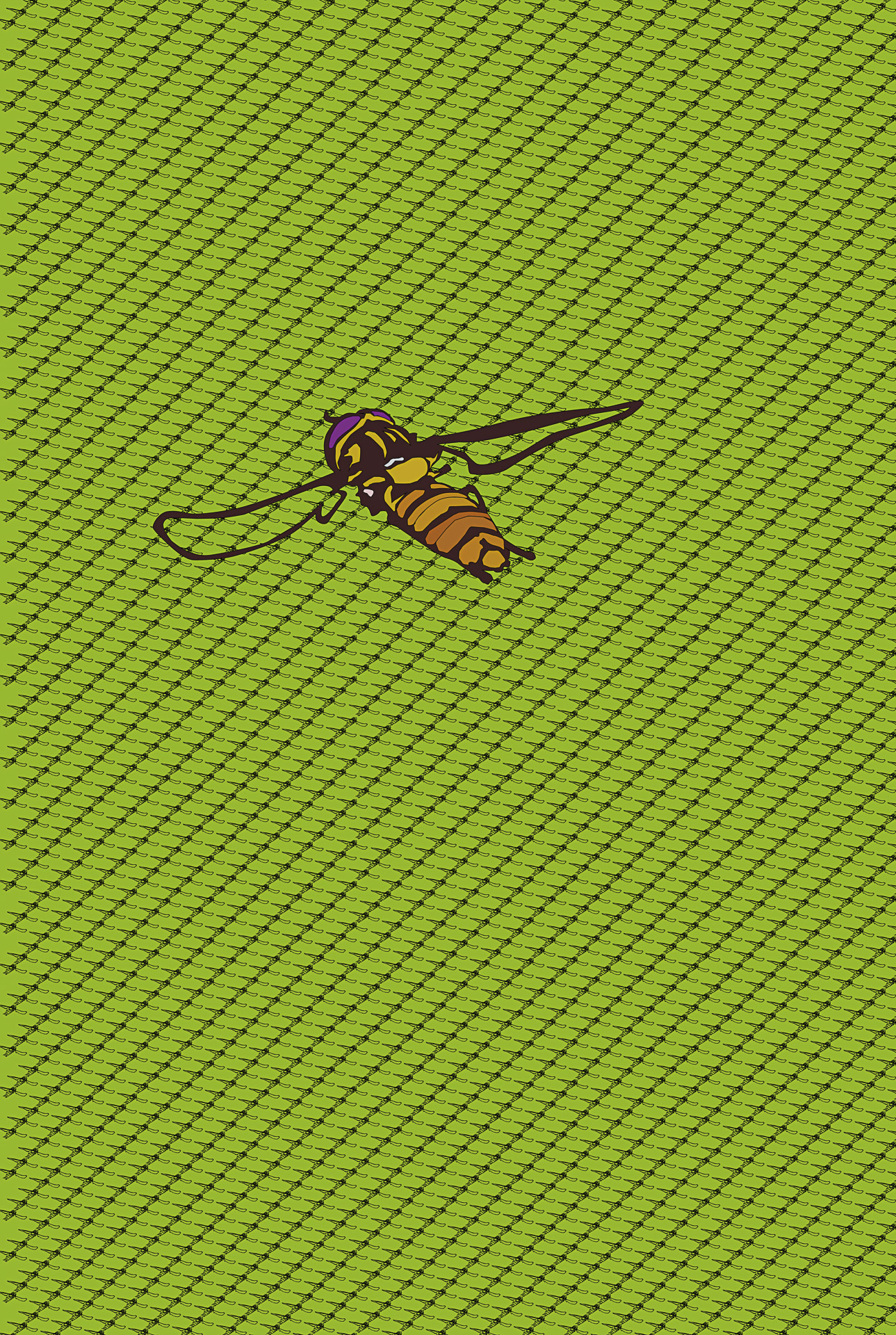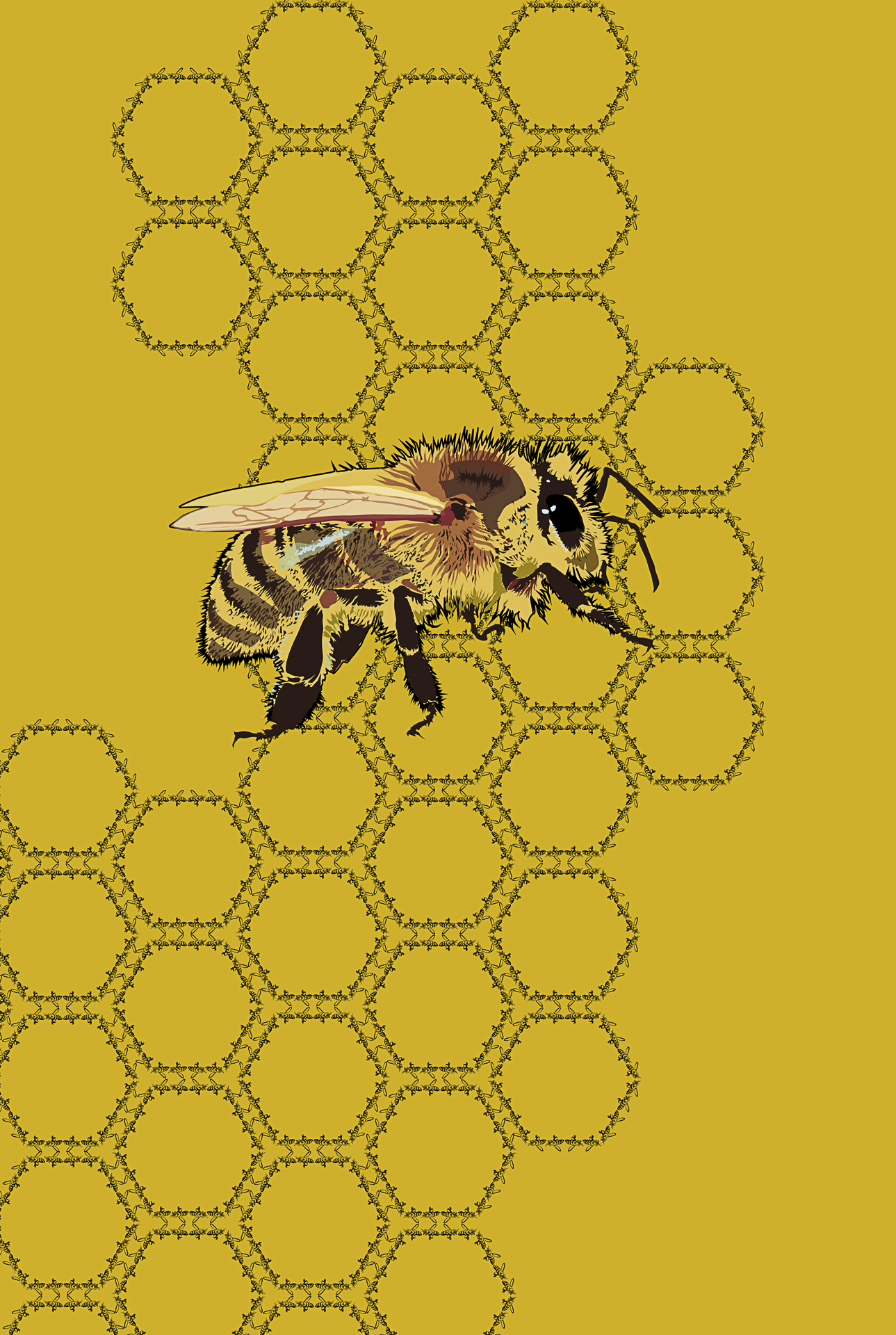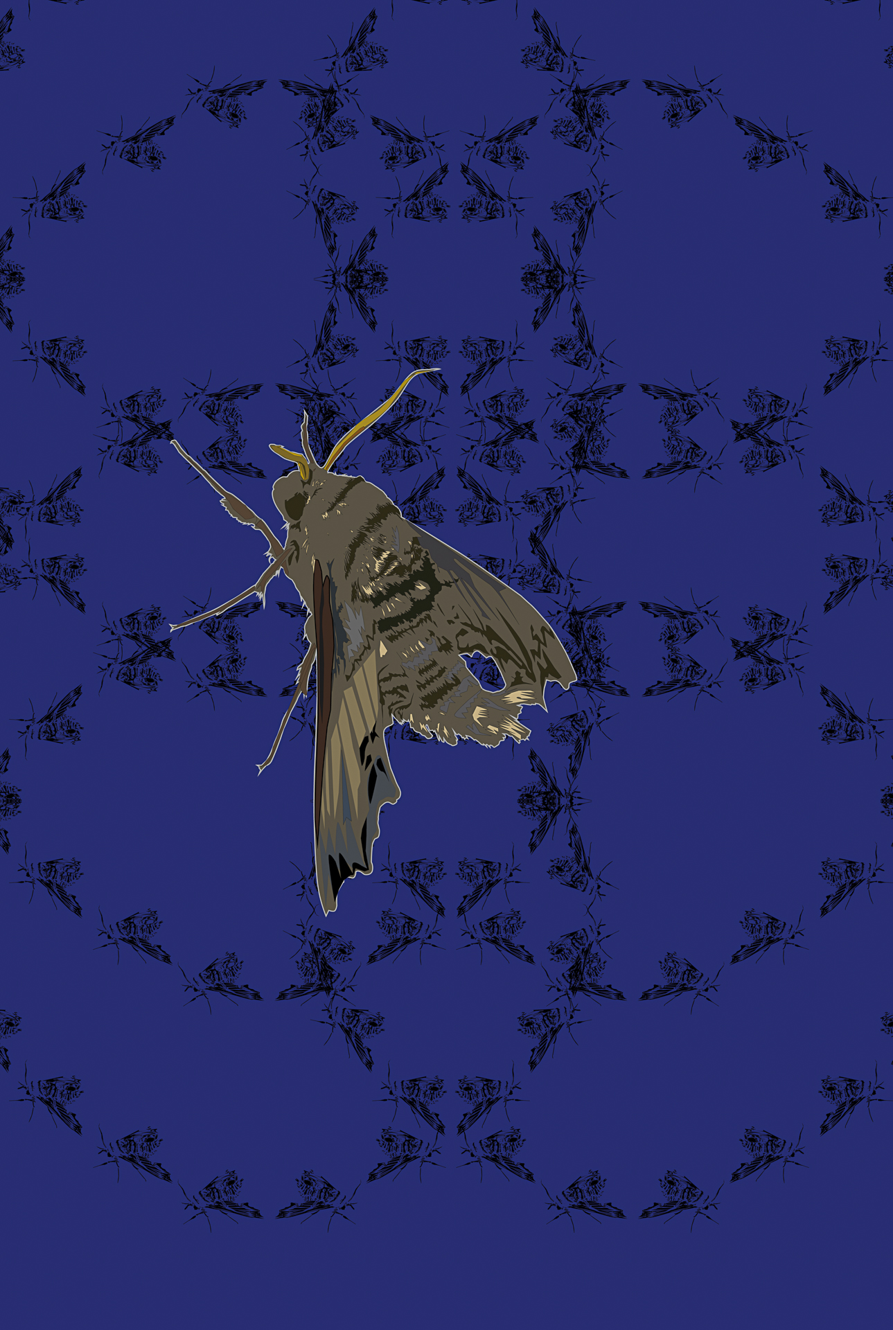 Les trames de fond expriment le mouvement; la danse du papillon qui voltige et virevolte, l’abeille qui butine et récolte, le bourdonnement de la guêpe qui résonne, de la mouche qui tournoie et s’envole. Il renvoie également au vent dans le champ de fleurs sauvages, la nuée d’un essaimage en plein ciel ou la fréquence sonore du bourdon bombus en action.