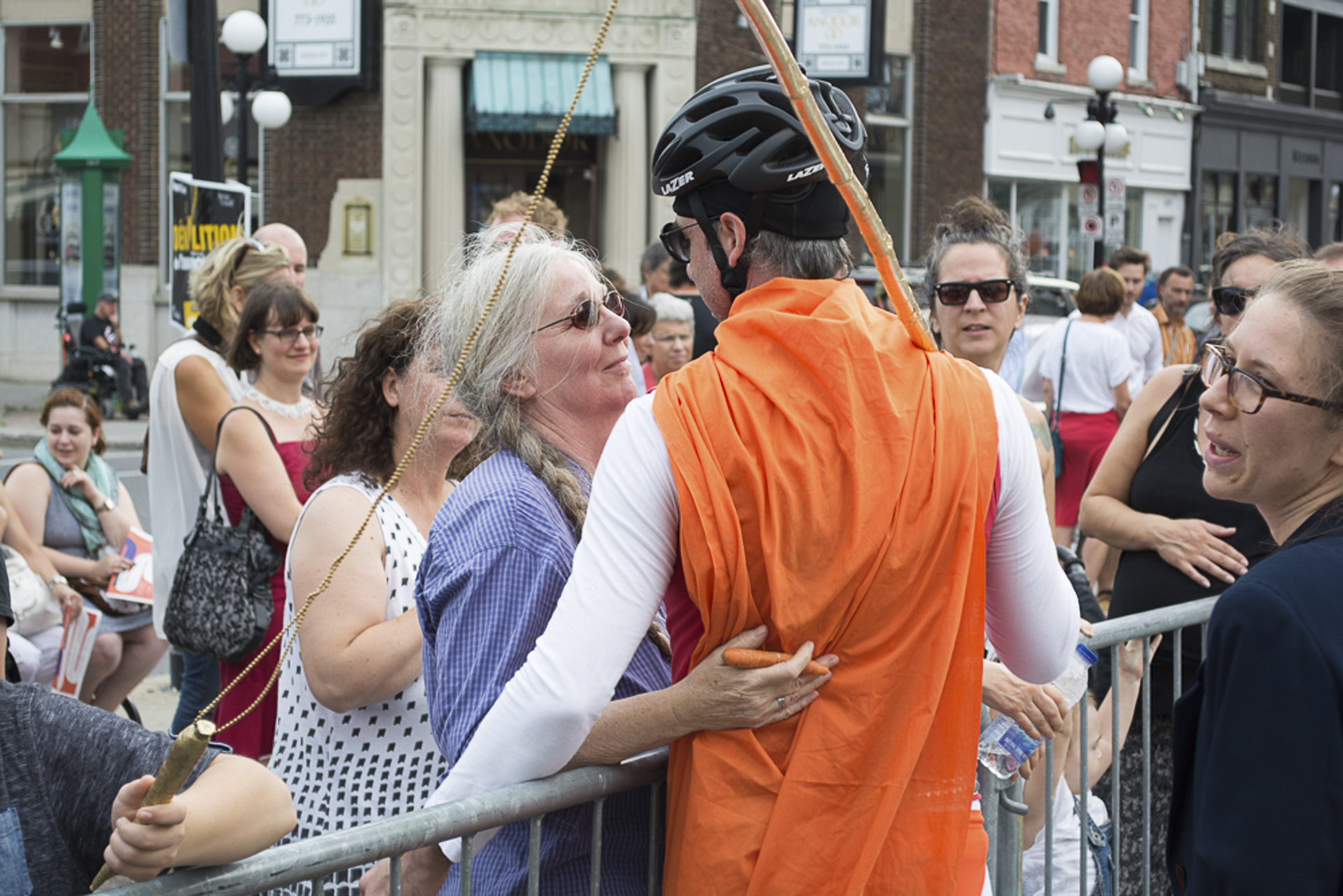 Se retrouver tous les soirs dans le regard de l’autre, sortir de l’isolement de l’expérience individuelle. Conclure dans le partage de l’espace public, être dominé par la frontière, monter à cheval comme un enfant, porter la carotte au public et perdre son innocence.